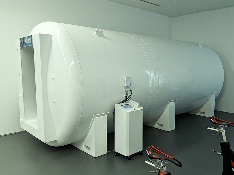 日本気圧バルク工業がアスリートをサポートするために開発した大型酸素ルームは、高地トレーニングに特化して設計されています。エアロバイクなどのトレーニングマシンをスムーズに配置することができ、快適なトレーニング環境を提供します。さらに、広々とした室内を活用し、20名から40名までの多くの人が同時に利用できる高気圧ルームとしてもご利用いただけます。この酸素ルームは分割式の搬入にも対応しており、モスラタイプの設置が難しい場合にも最適な選択肢となります。